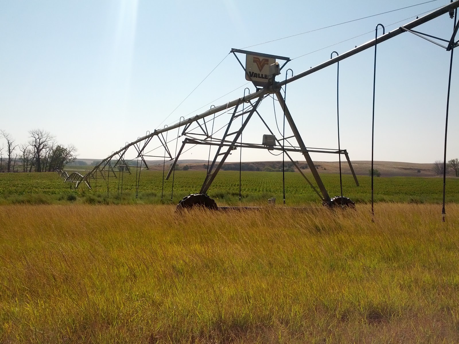 I discussed our irrigation wells in one of my previous posts, but the wells are only half of the irrigation equation. After the water is pumped out of the ground it has to be delivered to the crops. We do this by using sprinkler systems.